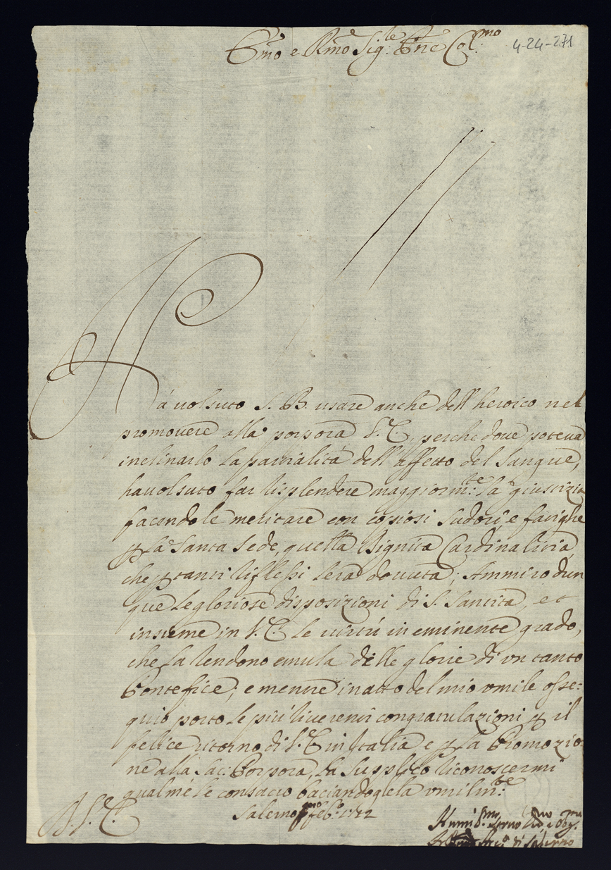 Lettere di congratulazioni per la promozione di sua eccellenza al cardinalato