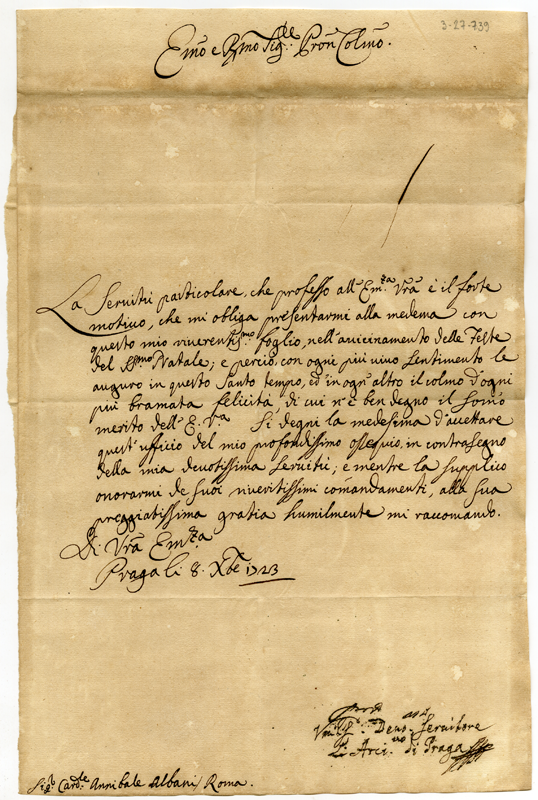 Lettera dell'arcivescovo di Praga al cardinale Annibale Albani (1723 dicembre 8)