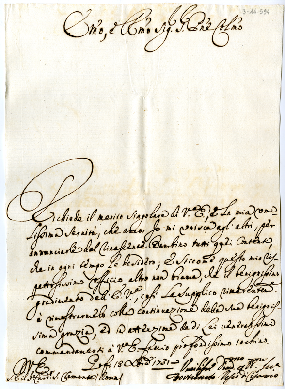 Lettera di Fortunato vescovo di Cisamo al cardinale Annibale Albani (1731 dicembre 13)