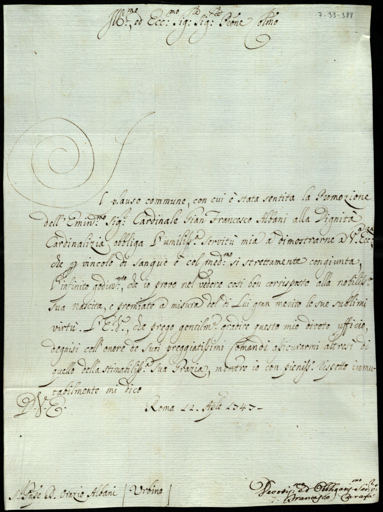 Lettere ricevute in Urbino dal Signor Principe Orazio Albani ultimo di questo nome nell'anno 1747