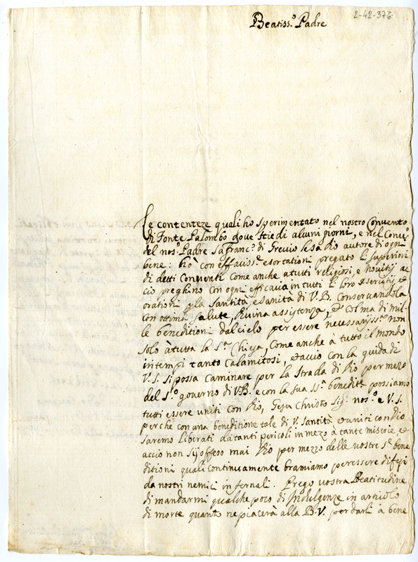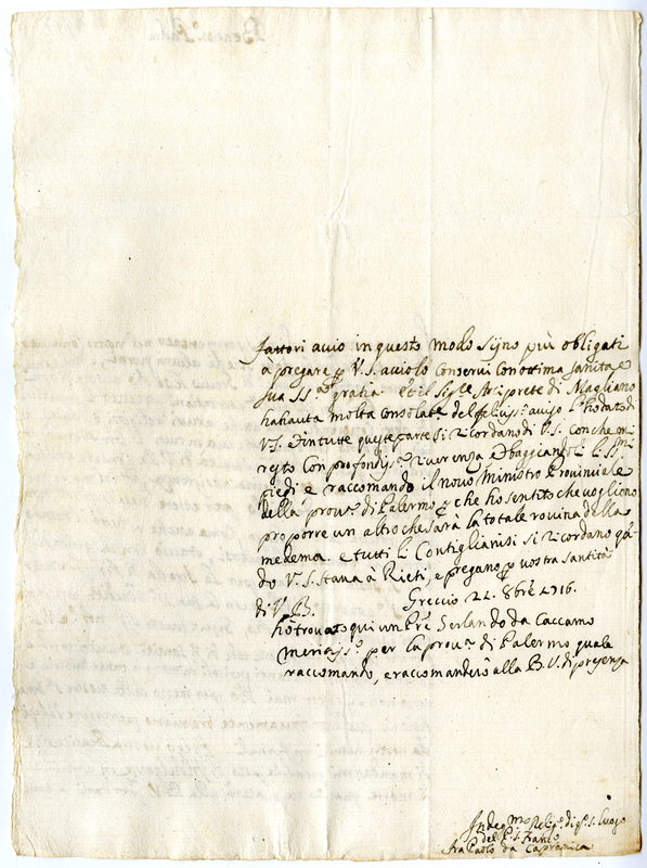 Lettera di fra Paolo da Capranica a papa Clemente XI (1716 ottobre 21)
