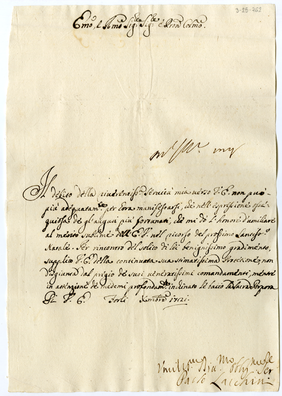 Lettera di Paolo Lacchini al cardinale Annibale Albani (1721 dicembre)