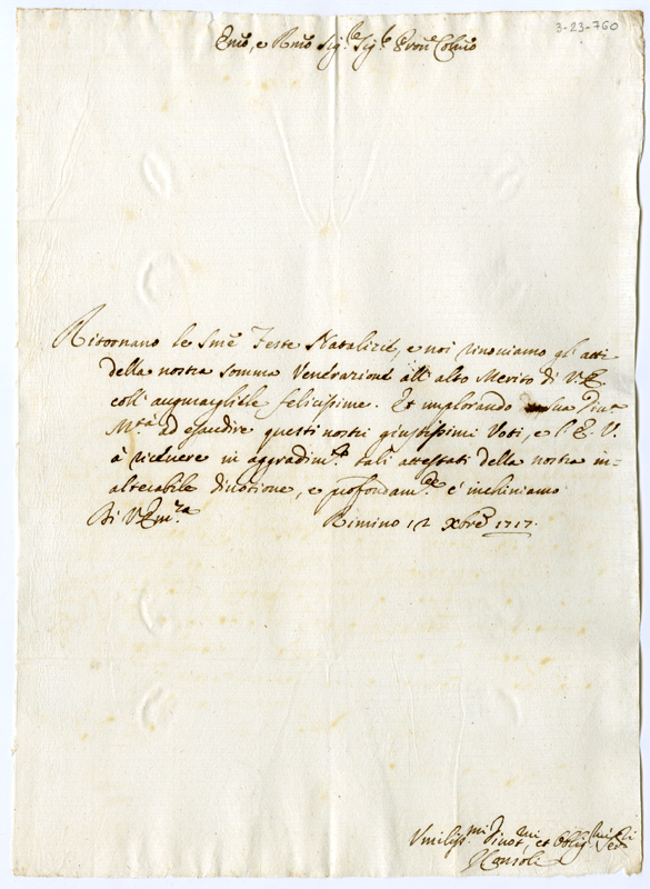 Lettera dei consoli della città di Rimini al cardinale Annibale Albani (1717 dicembre 12)