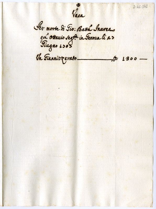 Giannizzerato vacante per morte di Giovanni Battista Inurea (1707 giugno 27)
