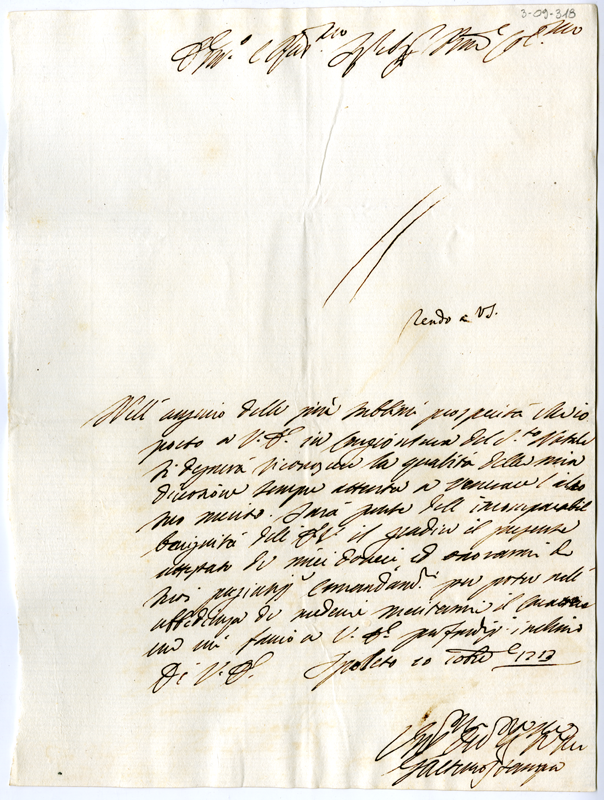 Lettera di Gaetano Stampi al cardinale Annibale Albani (1713 dicembre 10)