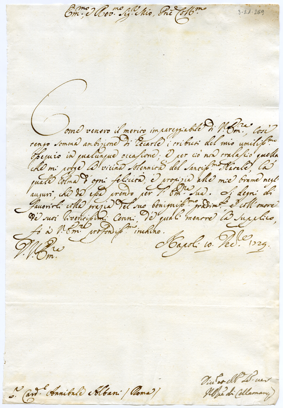 Lettera del principe di Cellamare al cardinale Annibale Albani (1729 dicembre 10)