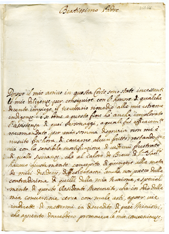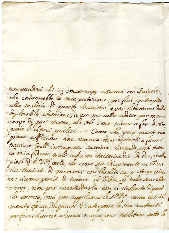 Chiede di avere l'aiuto del pontefice di interporre la propria mediazione affinché egli possa avere qualche occupazione militare nella repubblica veneta