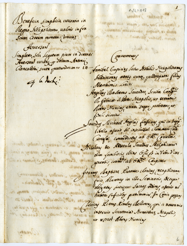 Beneficia simplicia vacantia in Regno Neapolitano, valoris infra scuta centum moneta Romana (1700-1721)