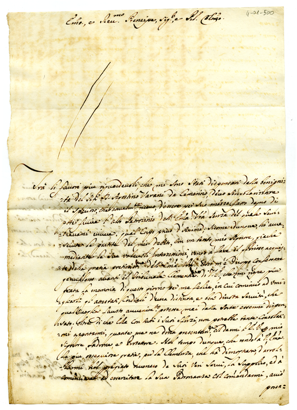 Lettera di Lorenzo Vermondo Fantini al Cardinale Annibale Albani (1715 giugno 20)