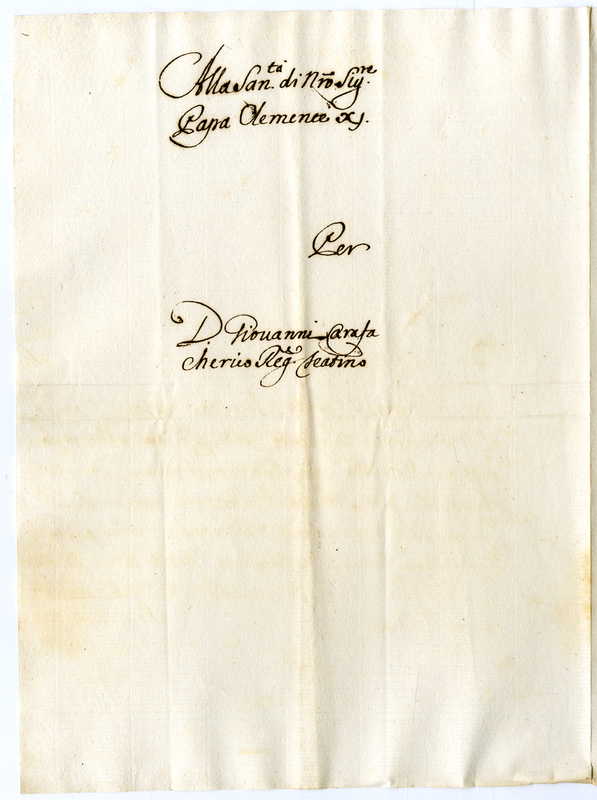 Lettera di Giovanni Carafa chierico regolare Teatino a papa Clemente XI (1700-1721)