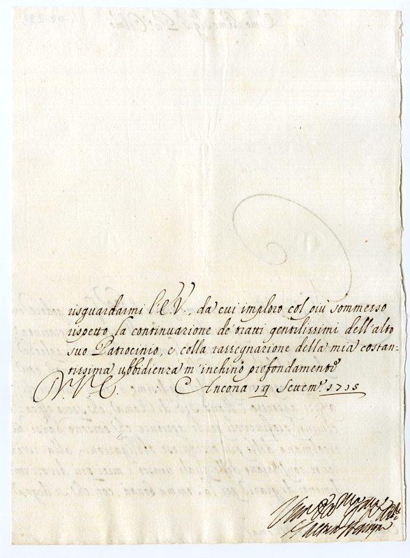 Lettera di Gaetano Stampa al Cardinale Annibale Albani (1715 settembre 19)