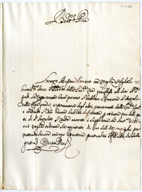 Lettera di Clemente Bussoni a papa Clemente XI (1700-1721)