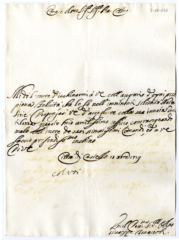 Lettera di Giuseppe Tenaccioli ad Annibale Albani (1719 dicembre 15)