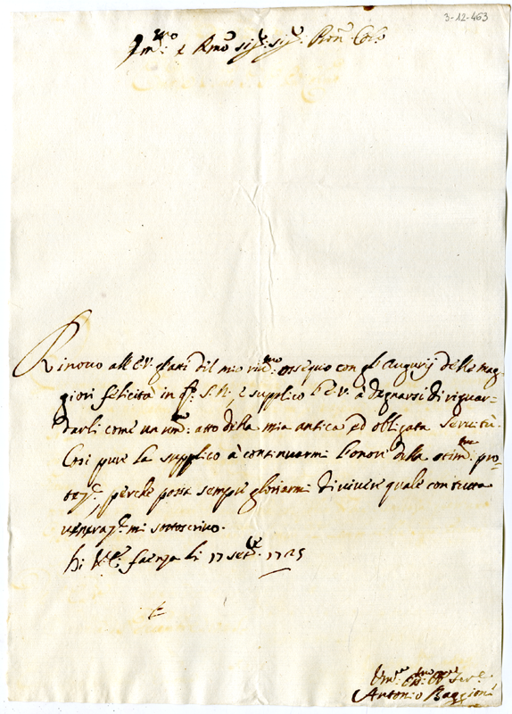Lettera di Antonio Baggioni al cardinale Annibale Albani (1725 dicembre 17)