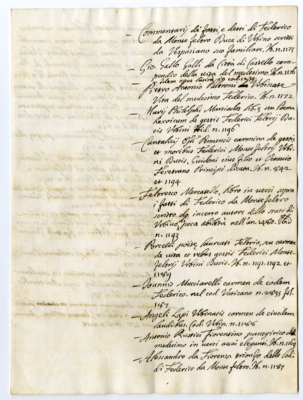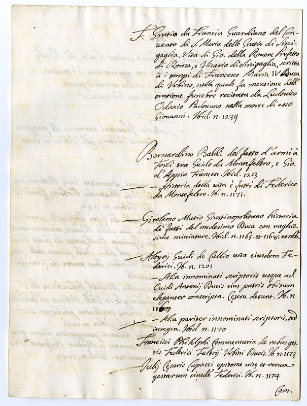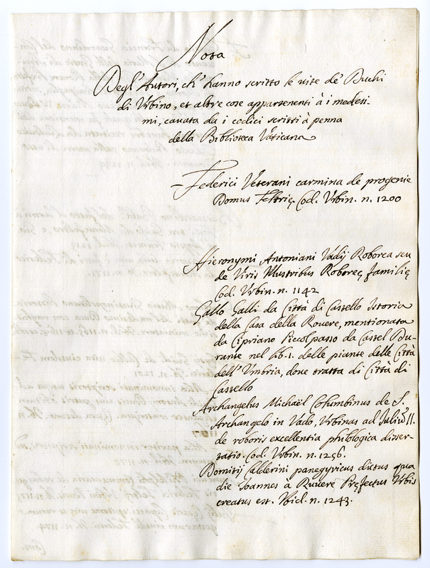 Nota degl'autori ch'hanno scritto le vite dè Duchi di Urbino, et altre cose appartenente è i medesimi, cavata dai codici scritti a penna della Biblioteca Vaticana