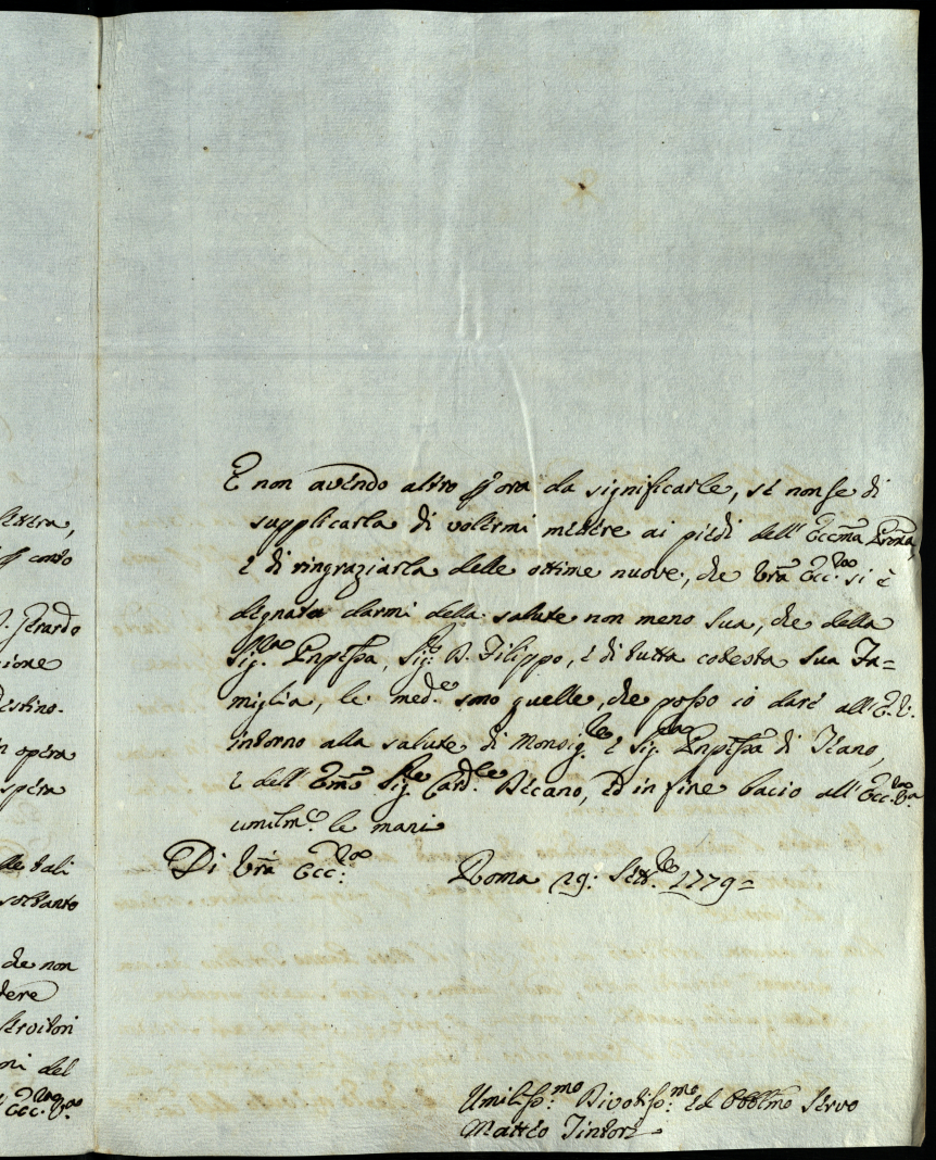 Lettere diverse ricevute dal principe Orazio Albani nella permanenza in Urbino del 1779