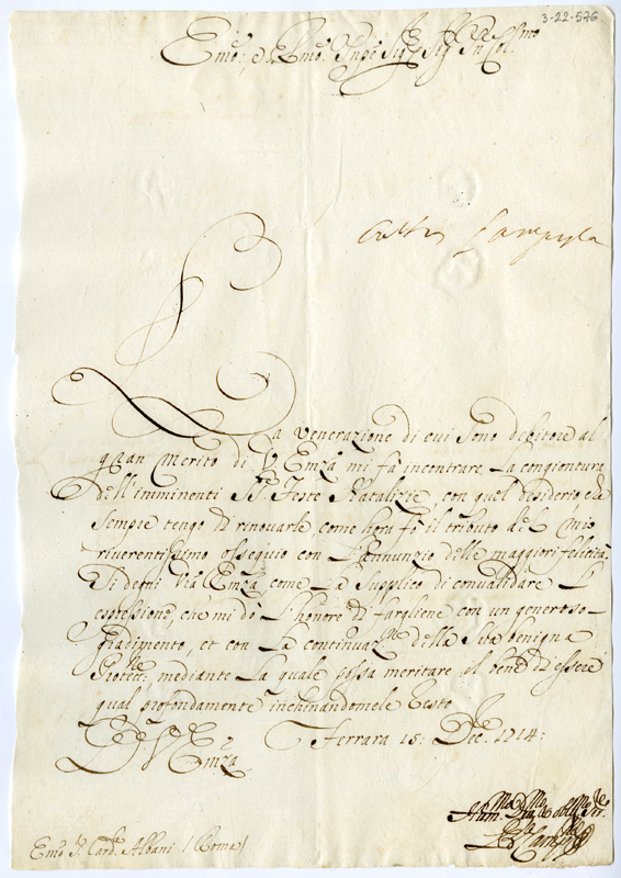 Lettera al cardinale Annibale Albani (1714 dicembre 15)