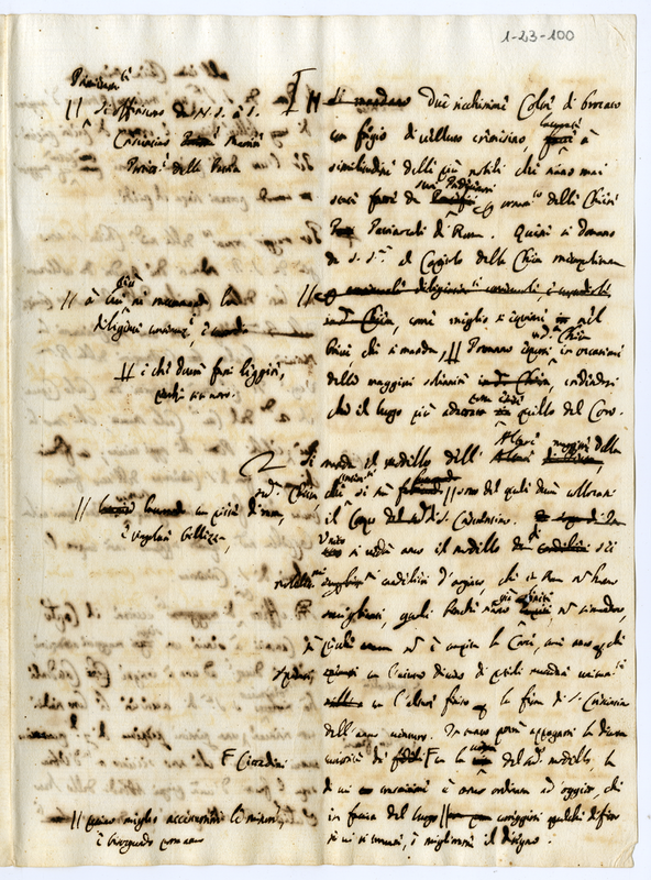 Elenco autografo di doni fatti da papa Clemente XI alla città di Urbino (1700-1721)
