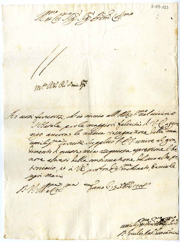 Lettera di Giulio Antonio Giovannini ad Annibale Albani (1708 dicembre 15)