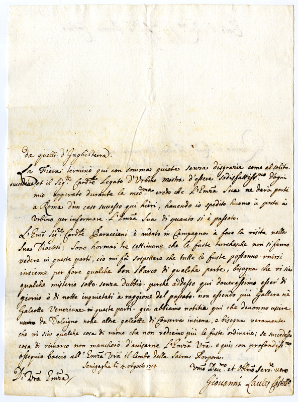 Lettera di Giovanni Laules ad un cardinale (1715 agosto 4)