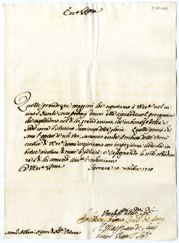 Lettera di Giuseppe Bartoli ad Annibale Albani (1710 dicembre 10)