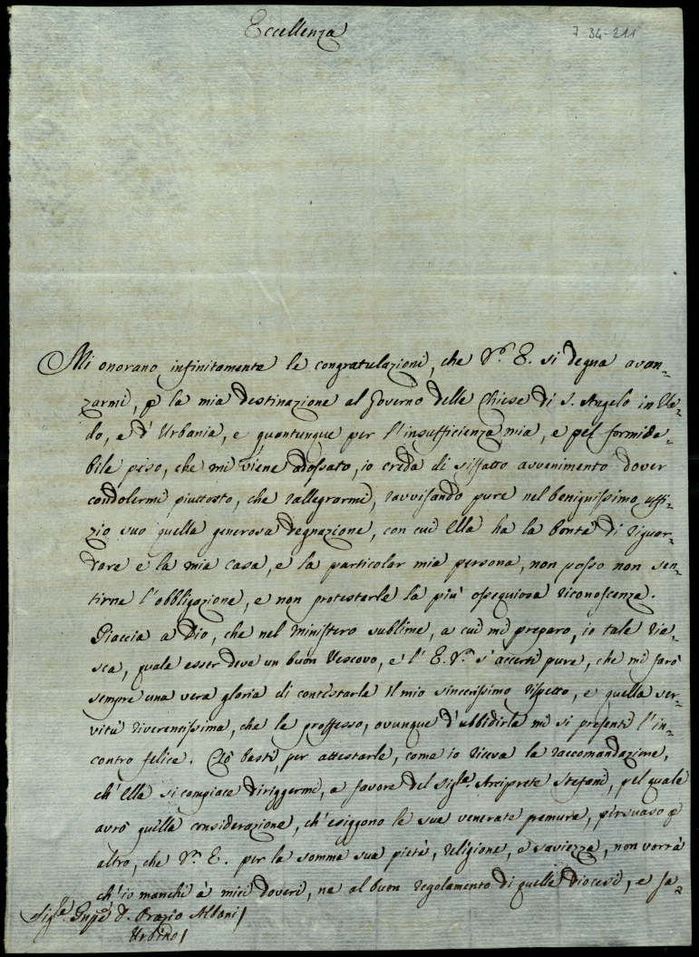 Lettere diverse ricevute dal principe Orazio Albani nella permanenza in Urbino del 1779