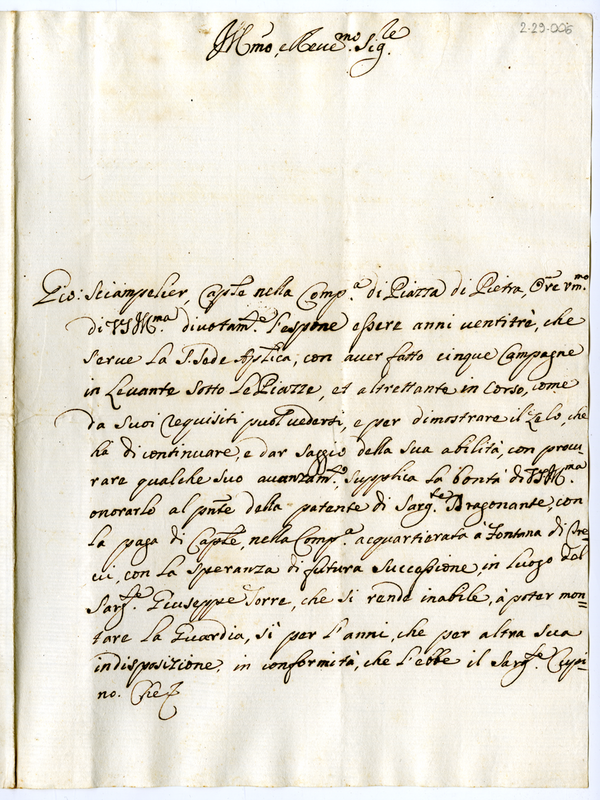 Chiede la patente di sergente e di poter succedere al sergente Giuseppe Torre