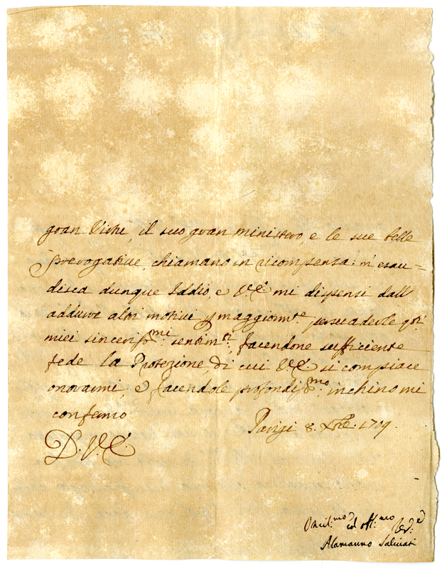 Lettera di Alamanno Salviati ad Annibale Albani (1709 dicembre 8)