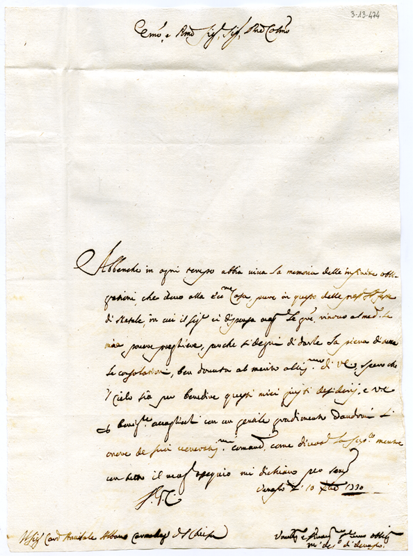 Lettera di Mattia vescovo di Venafro al cardinale Annibale Albani (1730 dicembre 10)