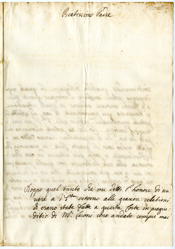 Lettera di Arduino d'Atene a Clemente XI (1701 agosto 8)