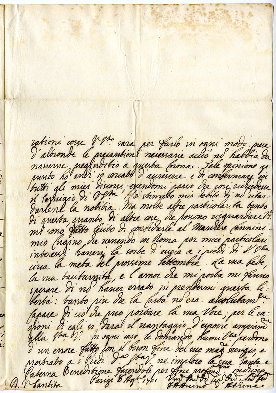 Relazione sui preguidizi intercorsi a danno di monsignor Casoni alla corte di Parigi e dà alcuni consigli