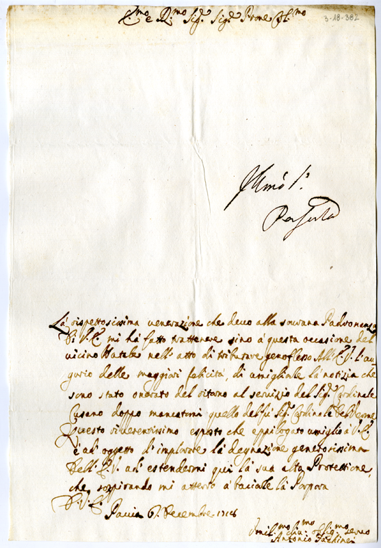 Lettera di Antonio Fachinei ad Annibale Albani (1718 dicembre 6)