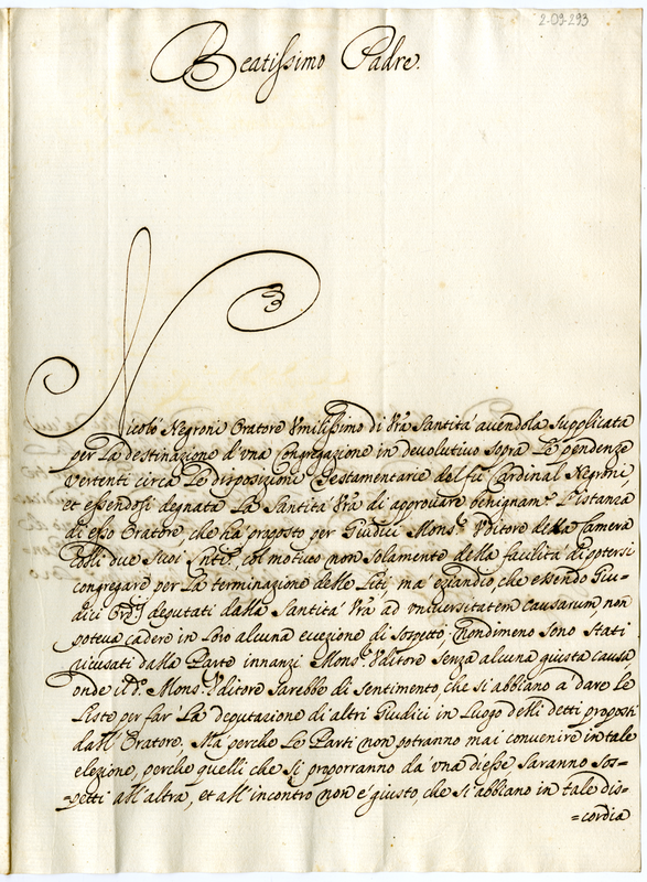Lettera di Nicolò Negroni a Clemente XI (1700-1721)