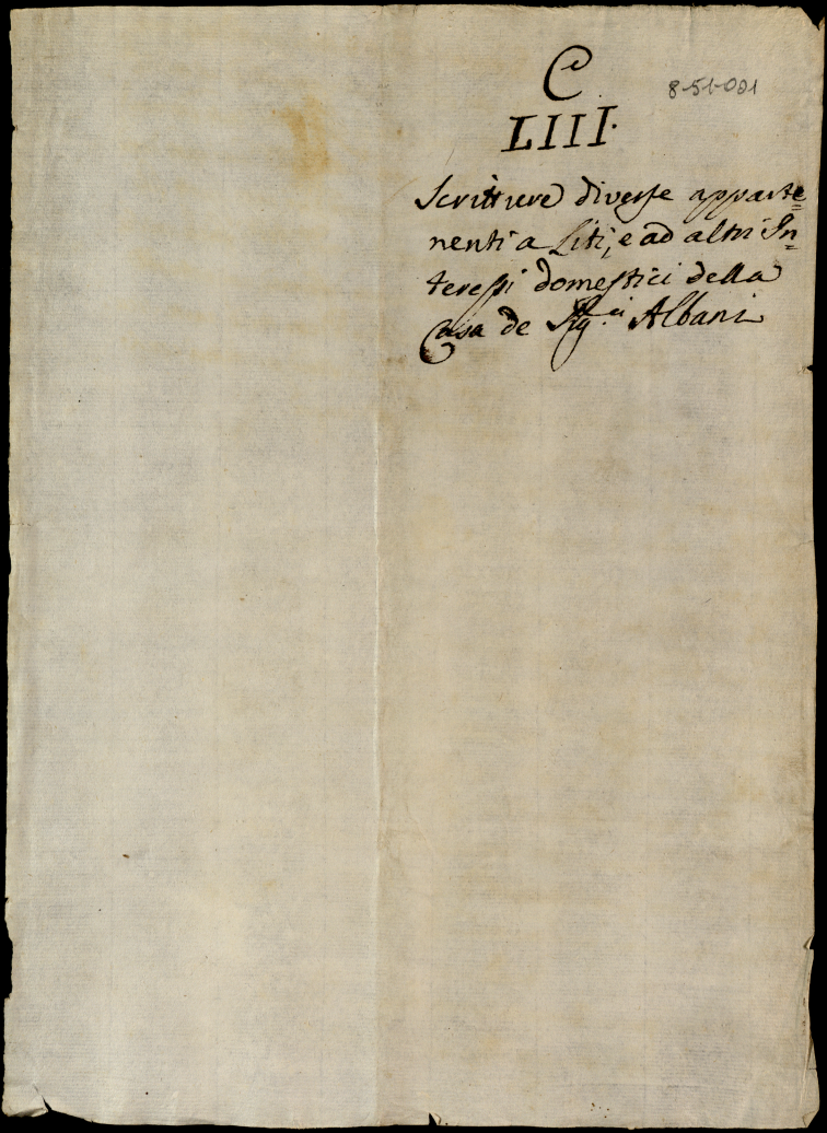 Scritture diverse appartenenti a liti e ad altri interessi domestici della Casa dei signori Albani