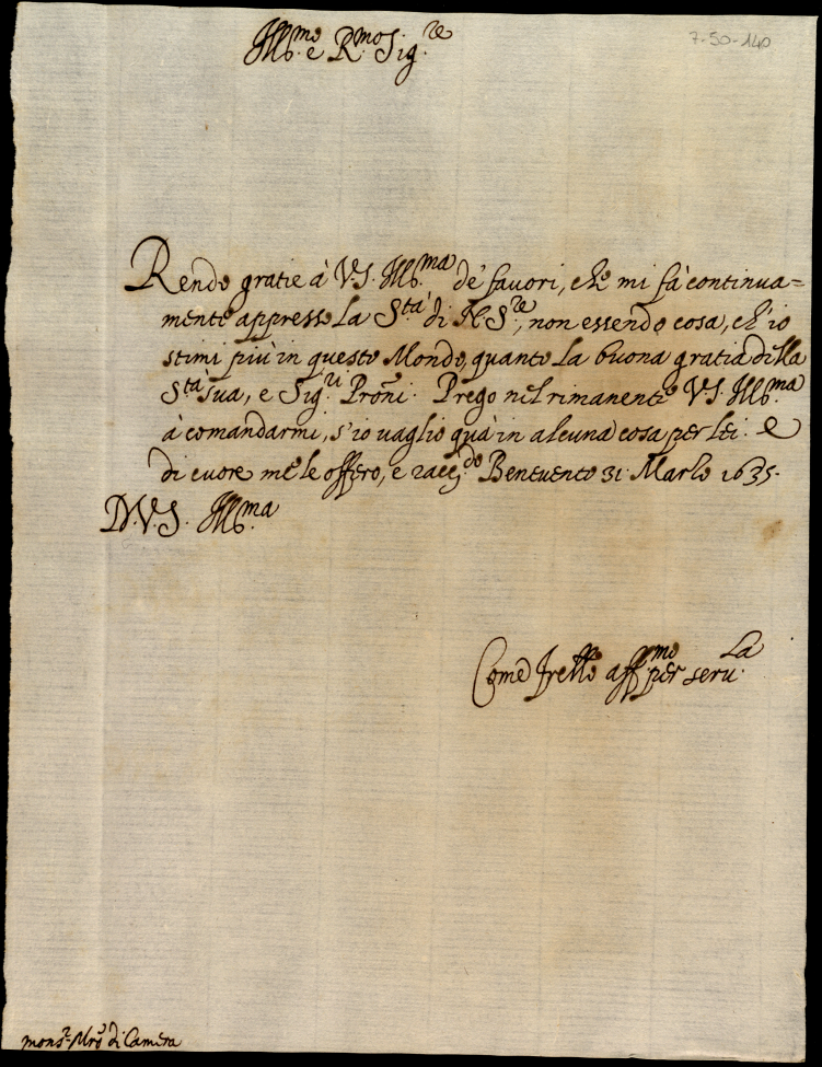 Minute di lettere latine, italiane e francesi scritte a diversi da Monsignor Annibale Albani di complimento, negozio