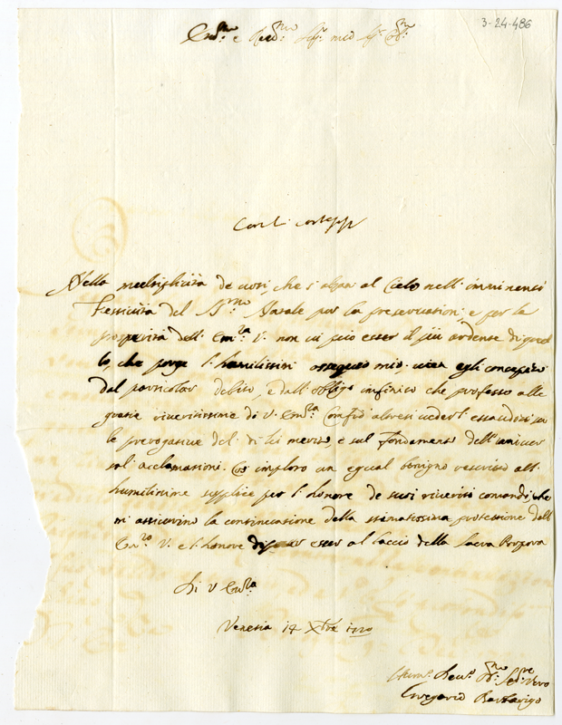 Lettera di Gregorio Barbarigo al cardinale Annibale Albani (1720 dicembre 14)