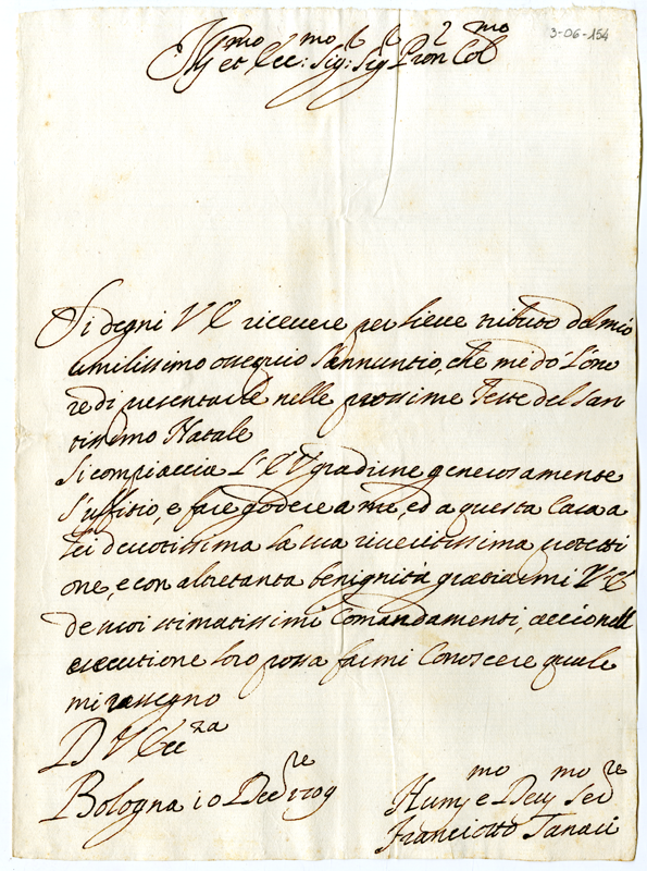 Lettera di Franciotto Tanari ad Annibale Albani (1709 dicembre 10)