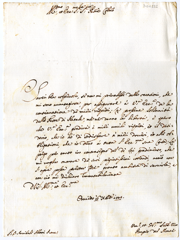 Lettera di Pompeo del Monte ad Annibale Albani (1704 dicembre 16)