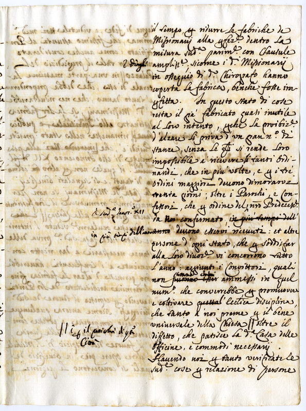 Bozza di Motu Proprio sulla questione della casa delle Missioni (1701 ottobre)