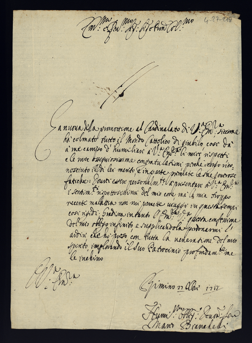 Lettere di congratulazioni per la promozione di Sua Eccellenza al Cardinalato. Tomo II