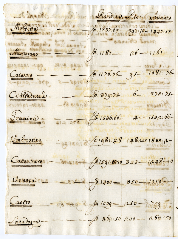 Nota de Vescovati vacanti nel Regno di Napoli di libera collatione della Santa Sede, coll'espressione dell'annua rendita, e pesi, secondo le note mandate da quel Monsignor Nunzio (1713 ca.)