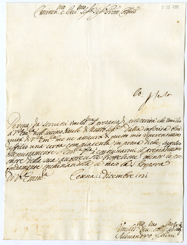 Lettera di Alessandro Ghini al cardinale Annibale Albani (1721 dicembre 11)
