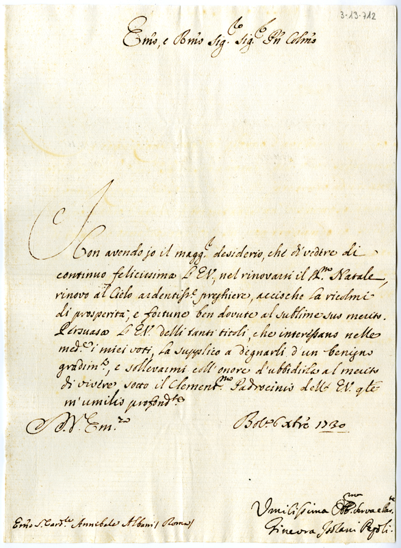 Lettera di Ginevra Isolani Pepoli al cardinale Annibale Albani (1730 dicembre 6)