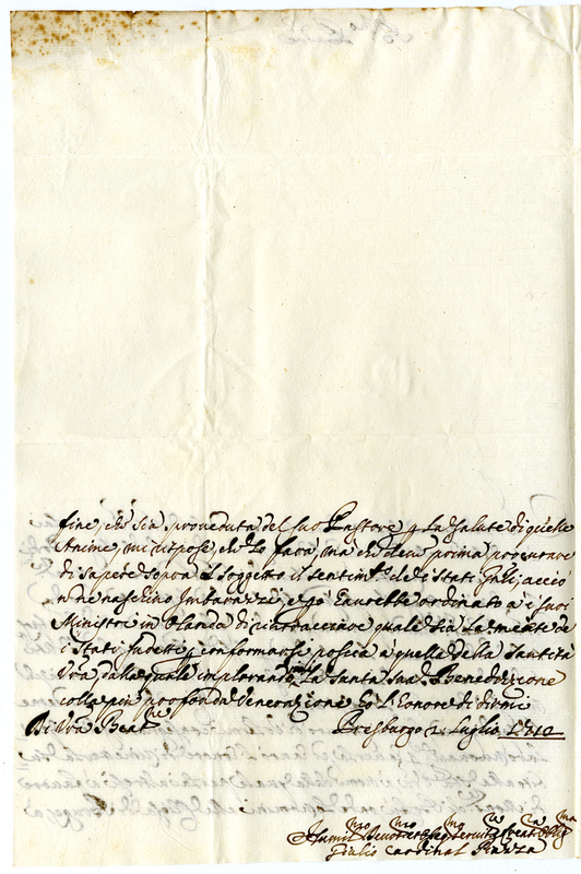Lettera del Cardinale Giulio Piazza a Papa Clemente XI (1710 luglio 2)