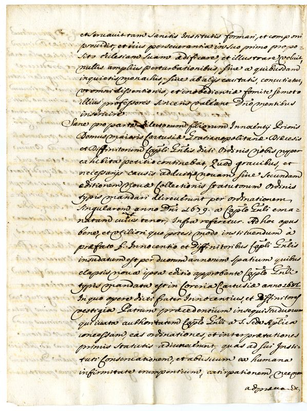Memoria dell'ordine dei certosini (1687 dicembre 14)