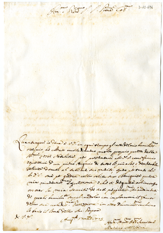 Lettera di Severino Missini al cardinale Annibale Albani (1725 dicembre 5)