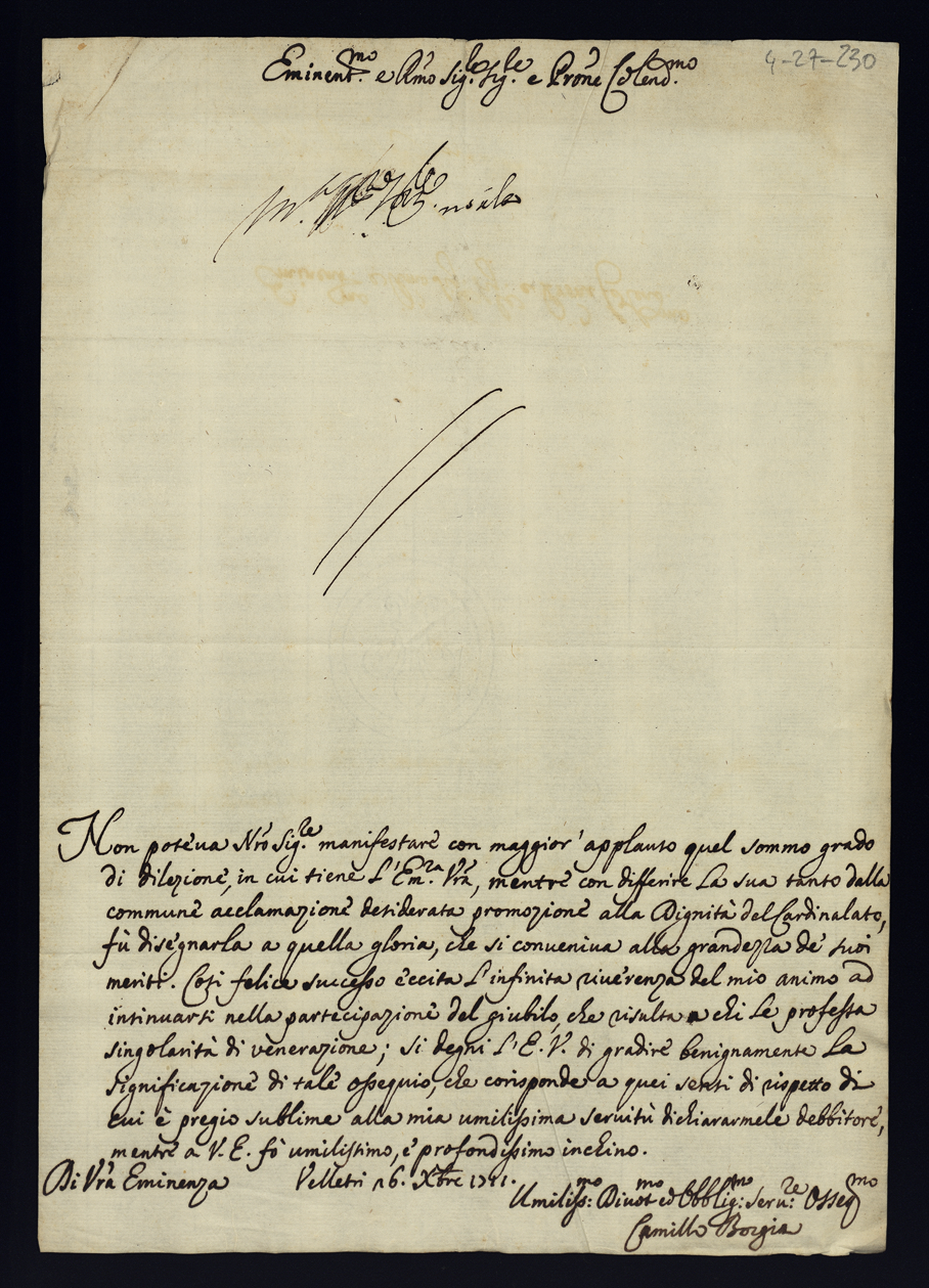 Lettere di congratulazioni per la promozione di Sua Eccellenza al Cardinalato. Tomo II