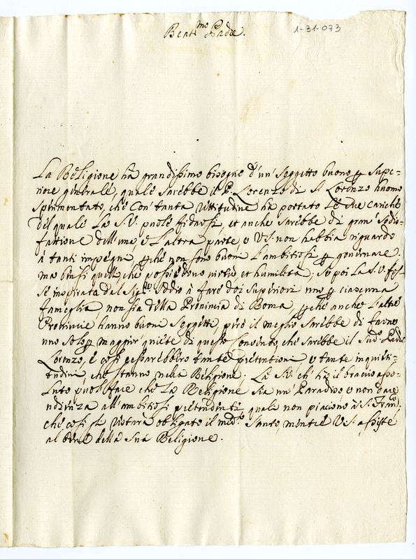 Idoneità di padre Lorenzo di San Lorenzo alla carica di superiore generale