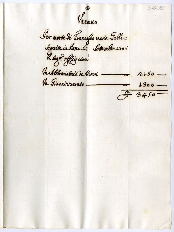 Uffici vacanti per morte di Francesco Maria Galli (1705 settembre)
