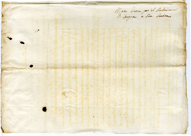 | dc.title | Nota data per il ambasciatore di Spagna a Sua Santità | |